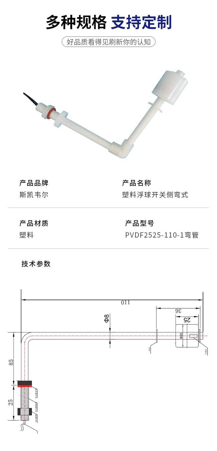 斯凯韦尔厂家批发塑料浮球开关浮球式液位开关侧弯式浮球水位开关